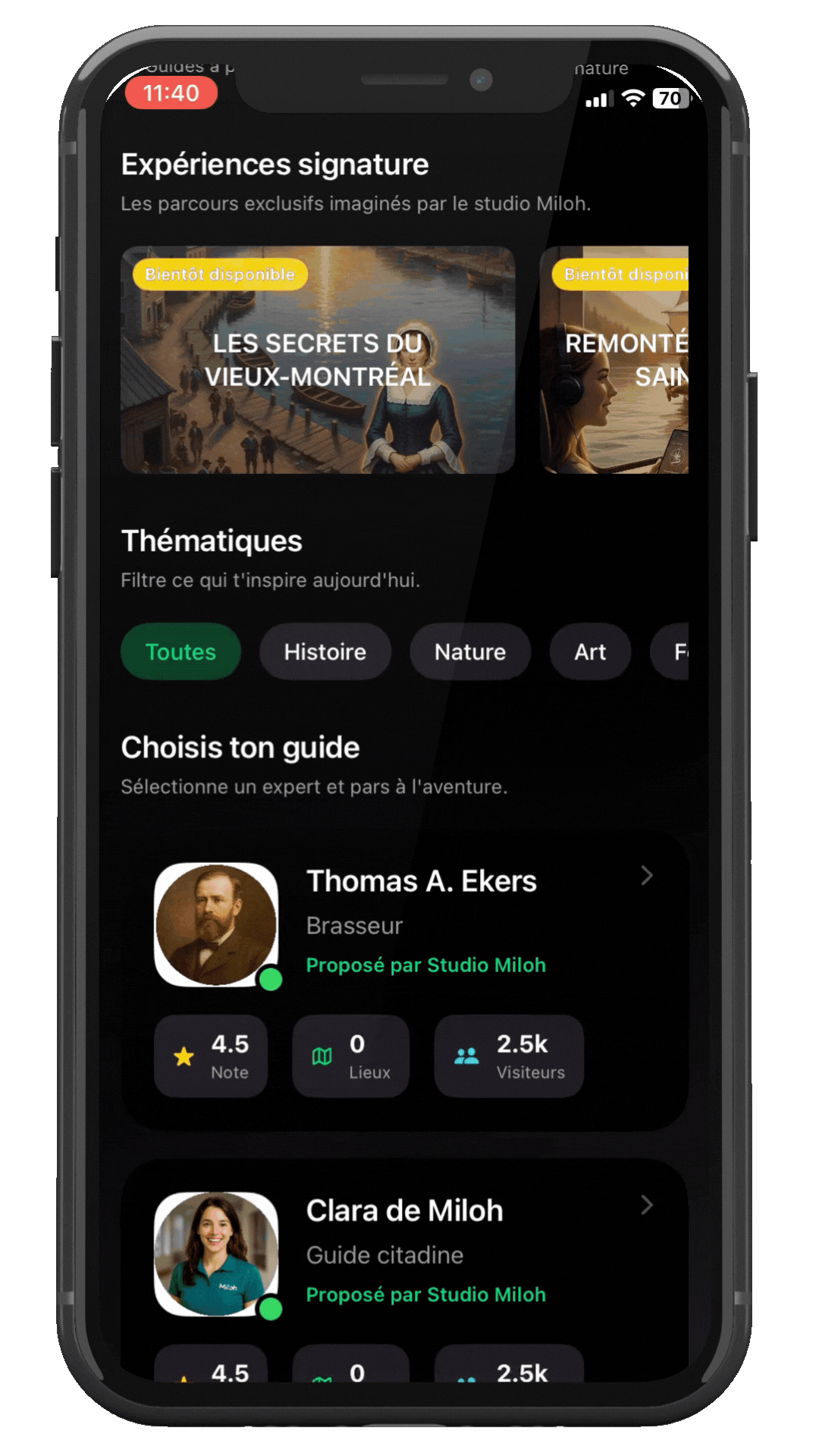 Avec Miloh, des personnages historiques prennent vie et deviennent vos guides tout au long du trajet. Leur récit s’ajuste en direct à votre position, à votre vitesse et à ce que vous regardez, pour raconter l’histoire exactement au moment où vous la traversez. Vous pouvez leur poser des questions, demander des anecdotes ou des précisions: ils répondent naturellement, de façon personnalisée. Multilingue, inclusif et mains libres, Miloh fonctionne sur tous les modes de transport et s’intègre facilement aux apps des transporteurs. Chaque déplacement devient une visite guidée vivante où l’Histoire vous parle, littéralement.